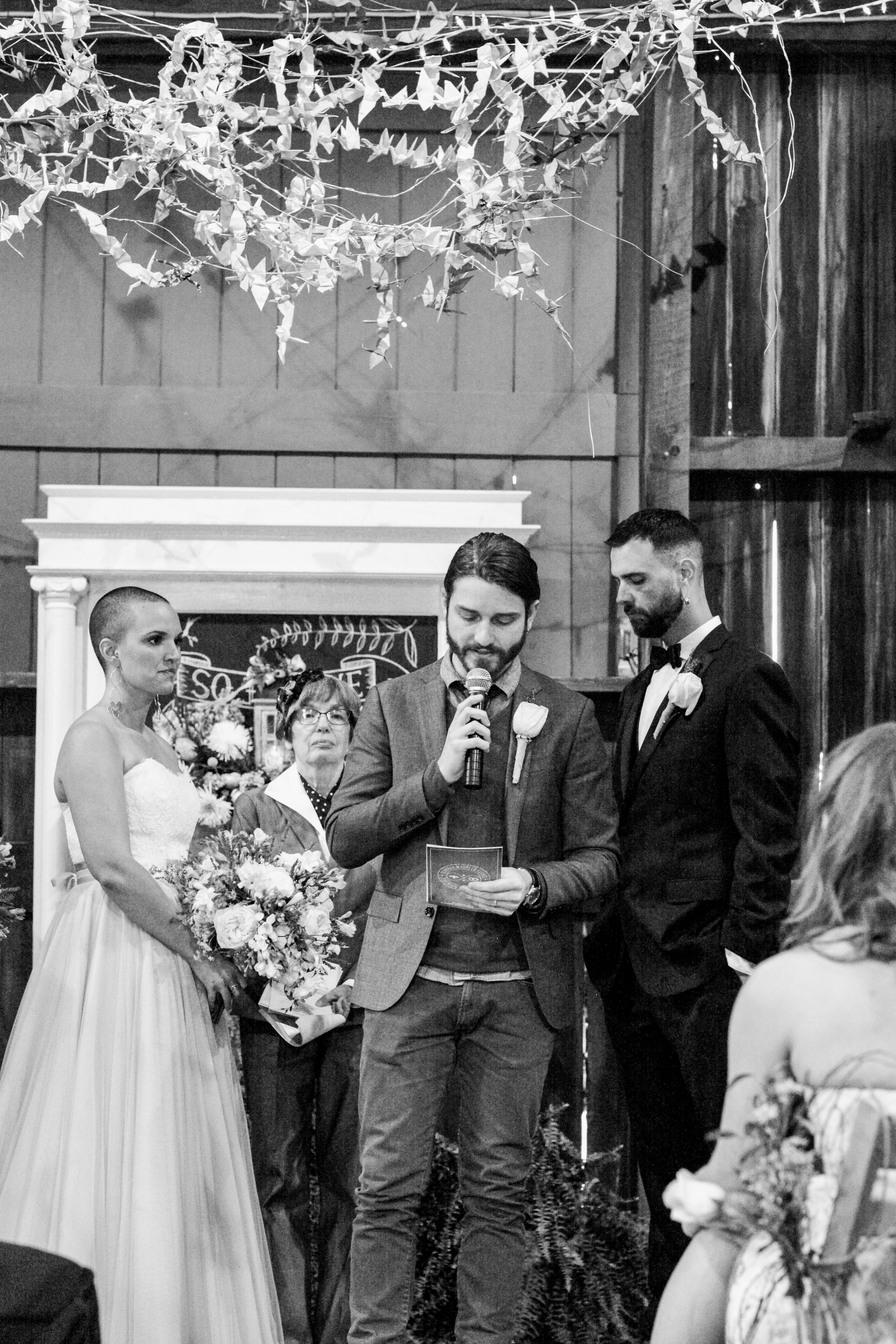 to honor those loved ones who are not with us today especially Maureen’s beloved sister, Darah. Her spot as Maid of Honor has been reserved as we know that her energy not only fills that role, but fills this room and overflows in our hearts.” This was read by our surrogate brother, Colin Morris.
